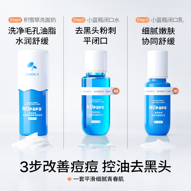 Hi!papa/海龟爸爸 青少年油痘肌三件套(洁面+精华+乳液)