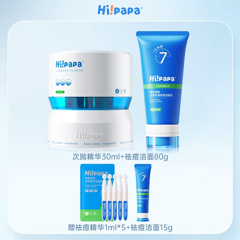Hi!papa/海龟爸爸 祛痘洁面乳80g+闭口水150ml+小蓝霜50g+祛痘精华液1ml*30支