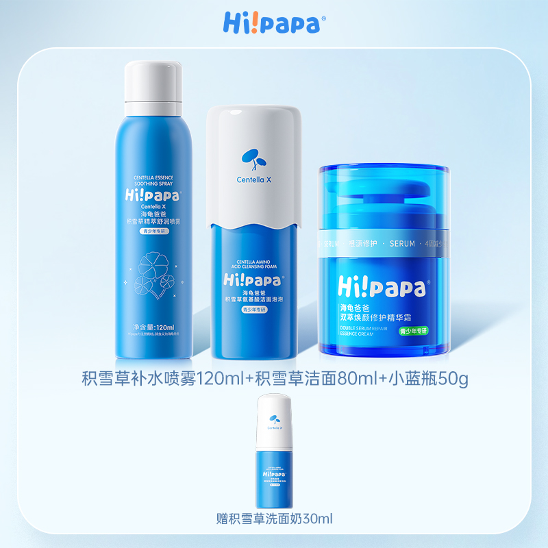 Hi!papa/海龟爸爸 积雪草洗面奶80ml+积雪草喷雾120ml+三合一面霜50g