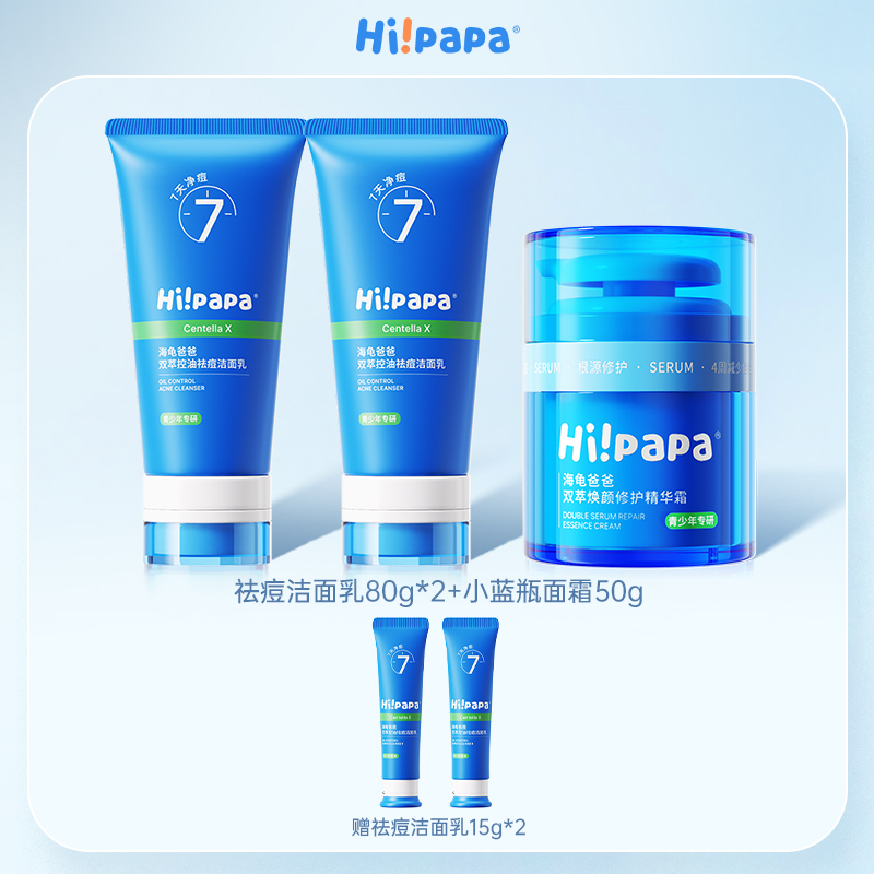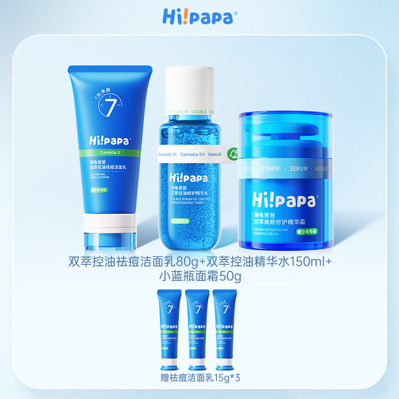 Hi!papa/海龟爸爸 双萃控油祛痘洁面乳80g+双萃控油精华水150ml+高保湿精华霜50g